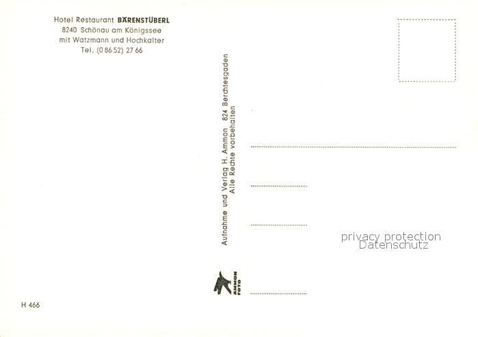 73086739 Schoenau Koenigssee Hotel Baerenstueberl postalisch nicht gelaufen Erhaltung siehe scans [NatalD47] KatCode: 11110009172132