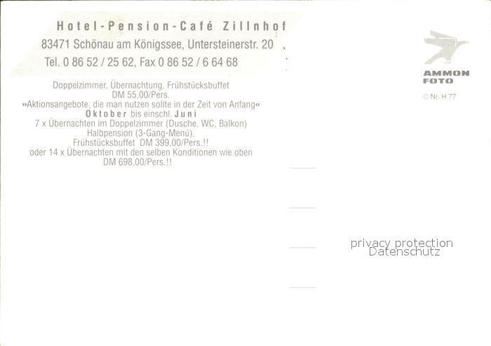 72279604 Schoenau Koenigssee Hotel Pension Cafe Zillnhof postalisch nicht gelaufen Erhaltung siehe scans KatCode: 11110009172132