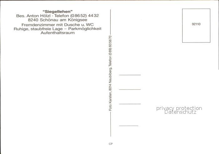 72370243 Schoenau Koenigssee Hotel Siegellehen Winterlandschaft postalisch nicht gelaufen Erhaltung siehe scans KatCode: 11110009172132
