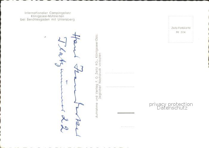 Schoenau Koenigssee Internationaler Campingplatz Muehlleiten mit Untersberg Berchtesgadener Alpen postalisch nicht gelaufen Erhaltung siehe scans