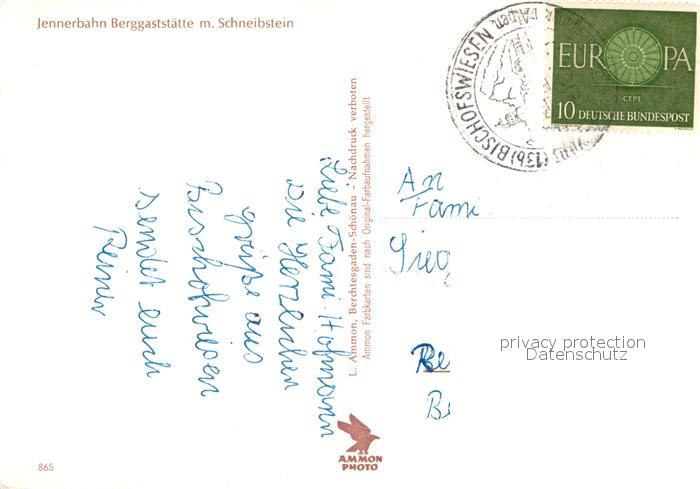 72966356 alte Postkarte Schoenau Koenigssee Jennerbahn Berggaststaette Schneibstein postalisch gelaufen Erhaltung siehe scans [NatalD47] KatCode: 11110009172132