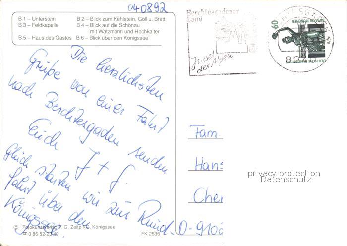 72567518 alte Postkarte Schoenau Koenigssee Kehlstein Watzmann Hochkalter postalisch gelaufen Erhaltung siehe scans [LiesaD40] KatCode: 11110009172132