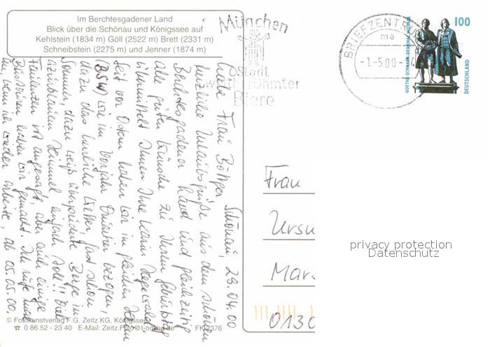 72627721 alte Postkarte Schoenau Koenigssee mit Kehlstein Goell Brett Schneibstein und Jenner postalisch gelaufen Erhaltung siehe scans [WerneD78] KatCode: 11110009172132