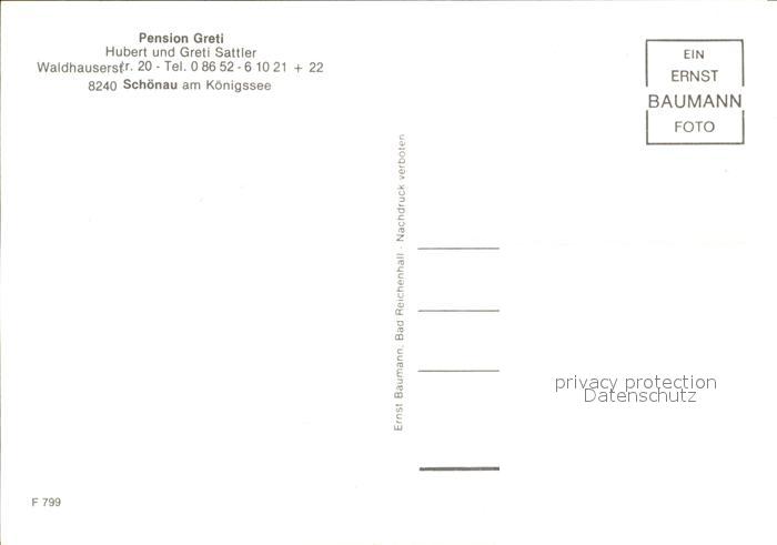 72492309 Schoenau Koenigssee Pension Greti postalisch nicht gelaufen Erhaltung siehe scans KatCode: 11110009172132