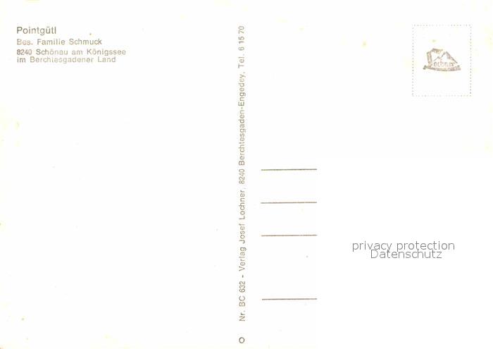 72800840 Schoenau Koenigssee Pointguetl Gaestehaus Ferienwohnungen postalisch nicht gelaufen Erhaltung siehe scans [FriedD77] KatCode: 11110009172132