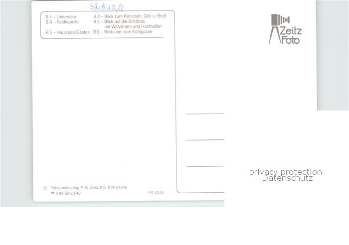 72582500 Schoenau Koenigssee Unterstein Feldkapelle Haus des Gastes Berchtesgadener Alpen postalisch nicht gelaufen Erhaltung siehe scans [FriedD77] KatCode: 11110009172132