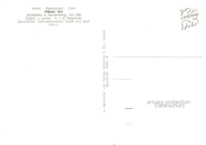 73804180 Schoenau Mannheim Hotel Restaurant Pfaelzer Hof postalisch nicht gelaufen Erhaltung siehe scans [FriedD77] KatCode: 11110008222000