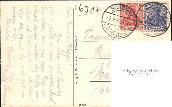 32185613 alte Postkarte Schoenau Odenwald postalisch gelaufen Erhaltung siehe scans KatCode: 11110008226080
