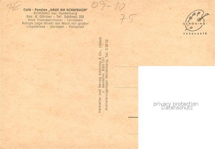 73659365 Schoenau Odenwald Cafe Pension Haus am Schafbach postalisch nicht gelaufen Erhaltung siehe scans [FriedD77] KatCode: 11110008226080