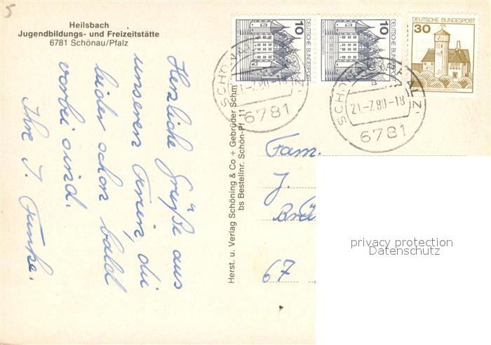 73672677 alte Postkarte Schoenau Pfalz Jugendbildungs und Freizeitstaette Heilsbach Spielplatz Sportanlage Freibad postalisch gelaufen Erhaltung siehe scans [WerneD78] KatCode: 11110007340045