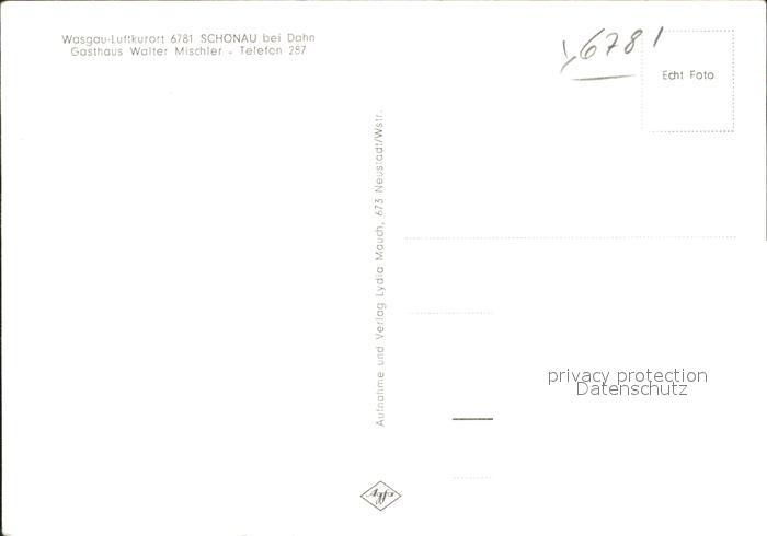 41792636 Schoenau Pfalz Wasgau Gasthaus Walter Mischter Ortsansicht postalisch nicht gelaufen Erhaltung siehe scans KatCode: 11110007340045