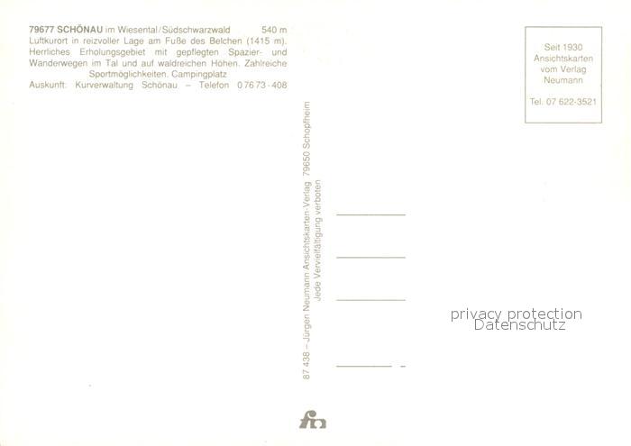 73245503 Schoenau Schwarzwald postalisch nicht gelaufen Erhaltung siehe scans [LiesaD40] KatCode: 11110008336079