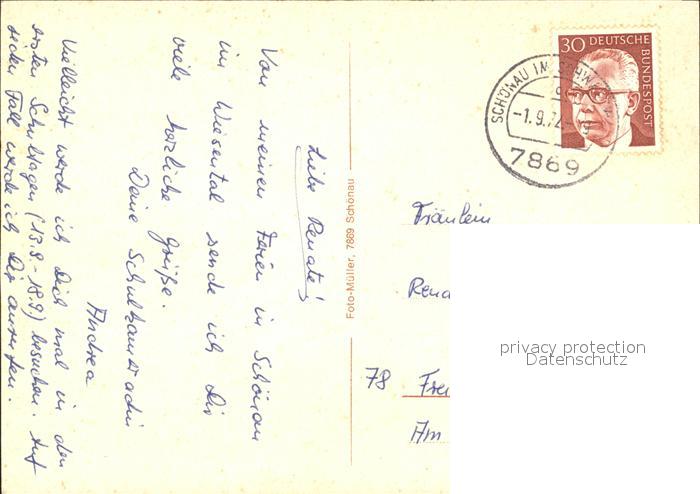 71830544 alte Postkarte Schoenau Schwarzwald postalisch gelaufen Erhaltung siehe scans KatCode: 11110008336079