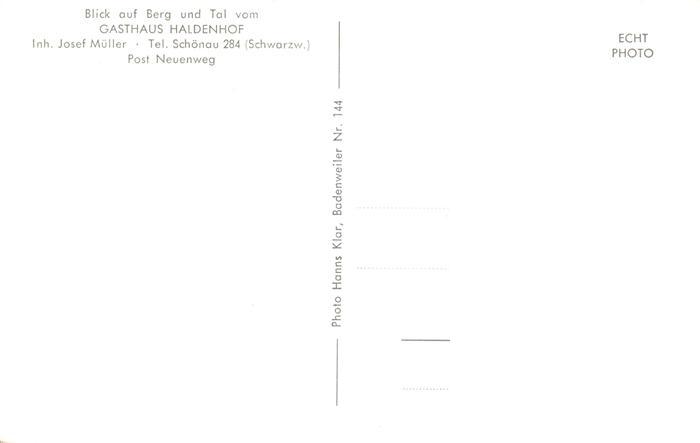 73914023 Schoenau Schwarzwald Blick aus dem Gasthaus Haldenhof postalisch nicht gelaufen Erhaltung siehe scans [WerneD78] KatCode: 11110008336079