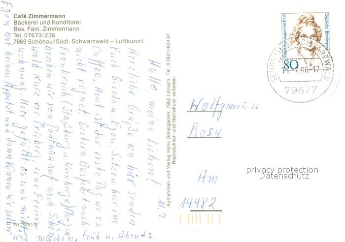 73645585 alte Postkarte Schoenau Schwarzwald Cafe Zimmermann Gaststube Kuehe Panorama Kirche postalisch gelaufen Erhaltung siehe scans [WerneD78] KatCode: 11110008336079