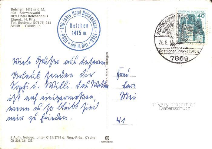 72493227 alte Postkarte Schoenau Schwarzwald Fliegeraufnahme Belchen mit Hotel postalisch gelaufen Erhaltung siehe scans KatCode: 11110008336079