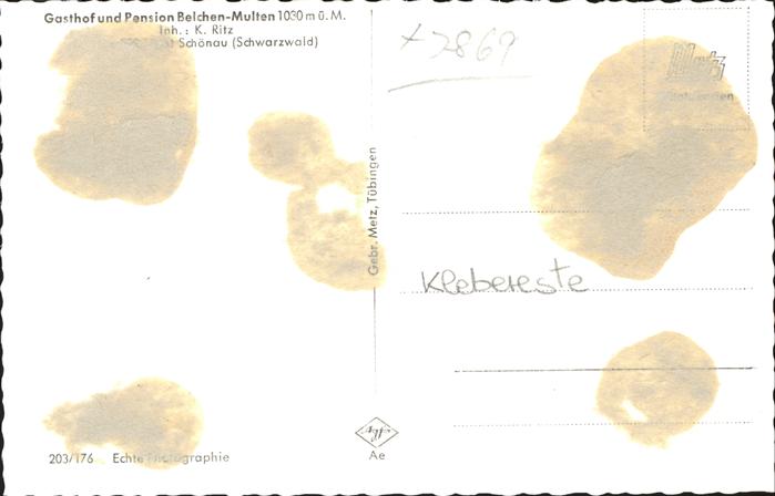41395115 Schoenau Schwarzwald Gasthaus Belchen-Multen K. Ritz postalisch nicht gelaufen Erhaltung mit Maengel KatCode: 11110008336079