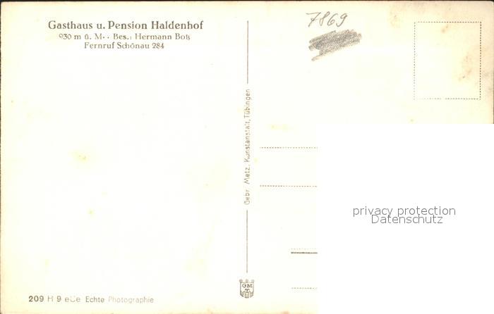 31702406 Schoenau Schwarzwald Gasthaus-Pension Haldenhof postalisch nicht gelaufen Erhaltung siehe scans KatCode: 11110008336079