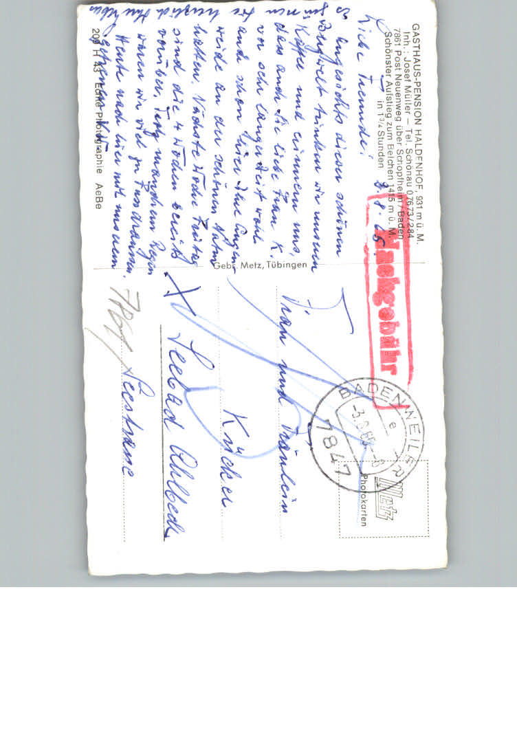 31153448 Schoenau Schwarzwald Gasthaus Pension Haldenhof postalisch nicht gelaufen KatCode: 11110008336079