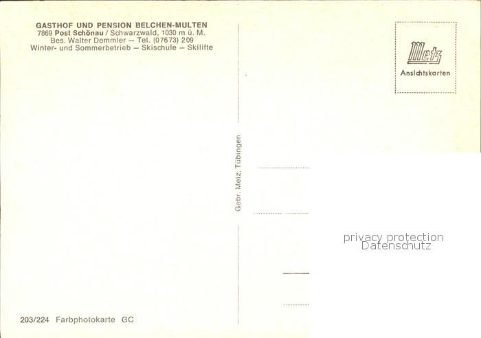71994686 Schoenau Schwarzwald Gasthof Belchen Multen postalisch nicht gelaufen KatCode: 11110008336079