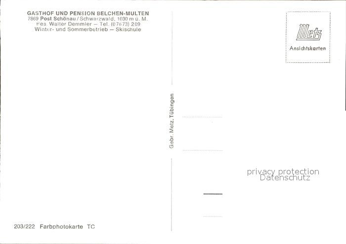 71994685 Schoenau Schwarzwald Gasthof Belchen Multen postalisch nicht gelaufen Erhaltung siehe scans KatCode: 11110008336079
