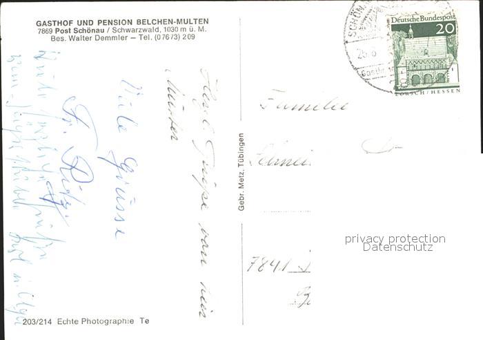 71994684 alte Postkarte Schoenau Schwarzwald Gasthof Belchen Multen postalisch gelaufen Erhaltung siehe scans KatCode: 11110008336079