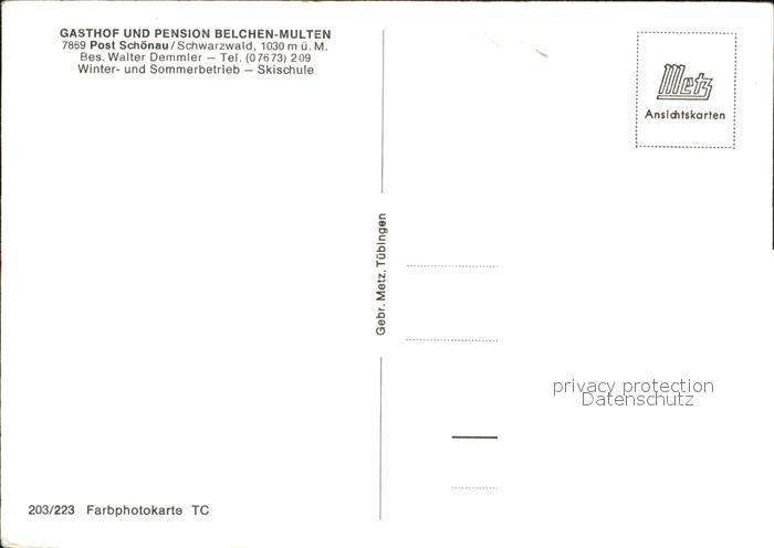 72512582 Schoenau Schwarzwald Gasthof Pension Belchen Multen postalisch nicht gelaufen Erhaltung siehe scans KatCode: 11110008336079