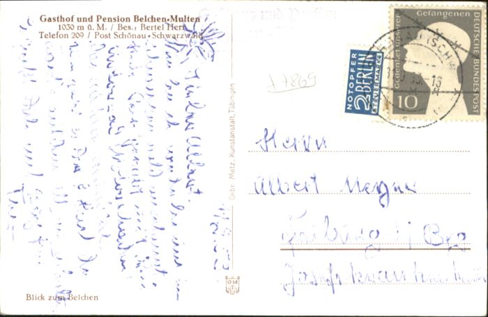 40897543 Schoenau Schwarzwald Gasthof Pension Belchen-Multen postalisch gelaufen Alte Ansichtskarte Postkarte alte Postkarte Katcode 11110008336079