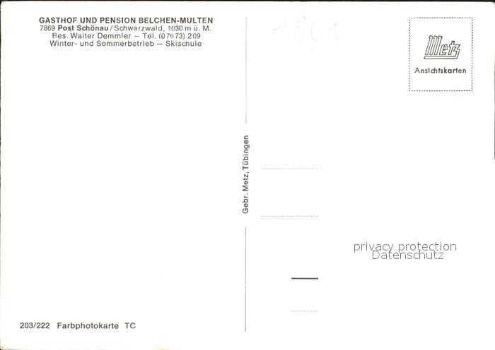 72512549 Schoenau Schwarzwald Gasthof und Pension Belchen Multen postalisch nicht gelaufen Erhaltung siehe scans KatCode: 11110008336079