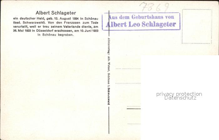 41545773 Schoenau Schwarzwald Heimathaus Grabstätte und Porträt von Albert Leo Schlageter KatCode 11110008336079