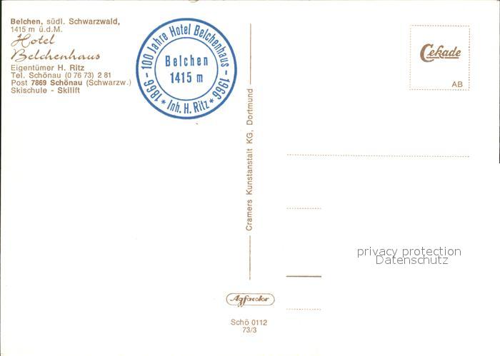 72493014 Schoenau Schwarzwald Hotel Belchenblick postalisch nicht gelaufen Erhaltung siehe scans KatCode: 11110008336079