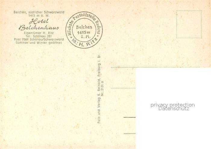 73608752 Schoenau Schwarzwald Hotel Belchenhaus postalisch nicht gelaufen Erhaltung siehe scans [WerneD78] KatCode: 11110008336079