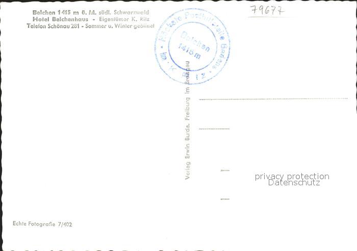 72217839 Schoenau Schwarzwald Hotel Belchenhaus postalisch nicht gelaufen Erhaltung siehe scans KatCode: 11110008336079