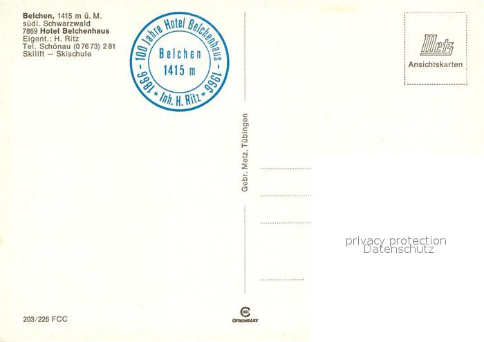 72931144 Schoenau Schwarzwald Hotel Belchenhaus Belchen postalisch nicht gelaufen Erhaltung siehe scans [KathaD81] KatCode: 11110008336079