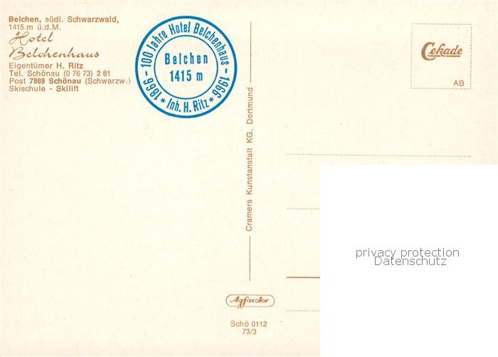 73791429 Schoenau Schwarzwald Hotel Belchenhaus Bergstrasse Panorama postalisch nicht gelaufen Erhaltung siehe scans [WerneD78] KatCode: 11110008336079