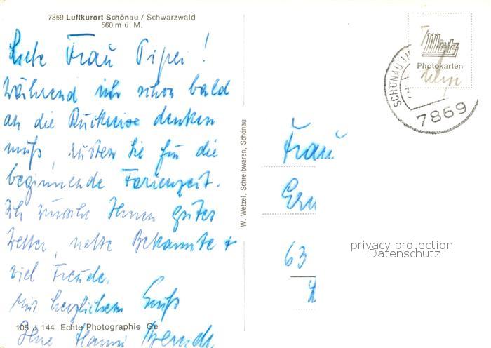 73212703 alte Postkarte Schoenau Schwarzwald Panorama Luftkurort postalisch gelaufen Erhaltung siehe scans [FriedD77] KatCode: 11110008336079
