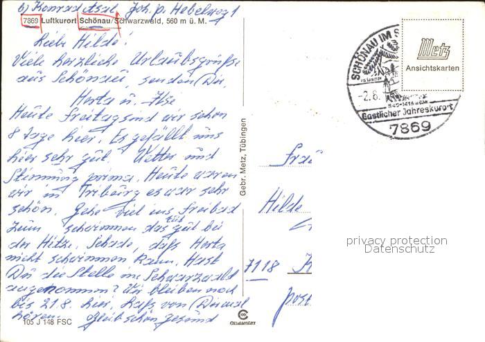 72543597 alte Postkarte Schoenau Schwarzwald Panorama Talstrasse Freibad postalisch gelaufen Erhaltung siehe scans [WerneD78 kv016box] KatCode: 11110008336079