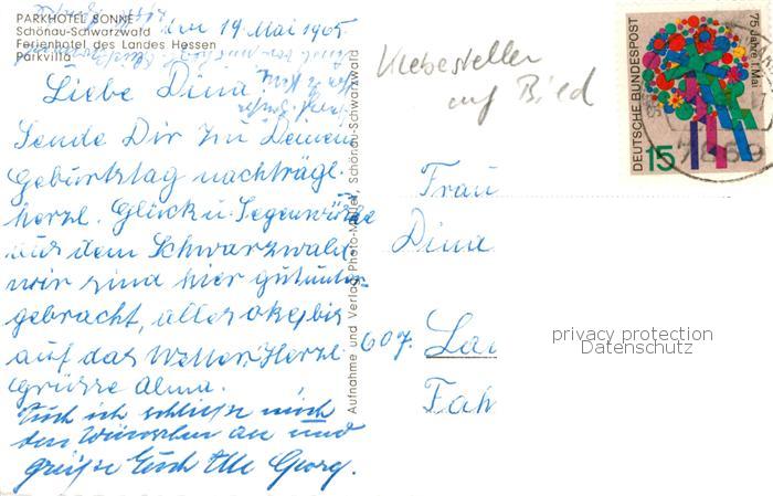 73795456 alte Postkarte Schoenau Schwarzwald Parkhotel Sonne Parkvilla postalisch gelaufen Erhaltung siehe scans [WerneD78] KatCode: 11110008336079