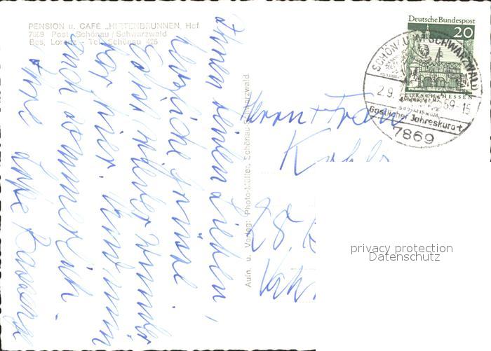 71900171 alte Postkarte Schoenau Schwarzwald Pension Cafe Hirtenbrunnen postalisch gelaufen Erhaltung siehe scans KatCode: 11110008336079