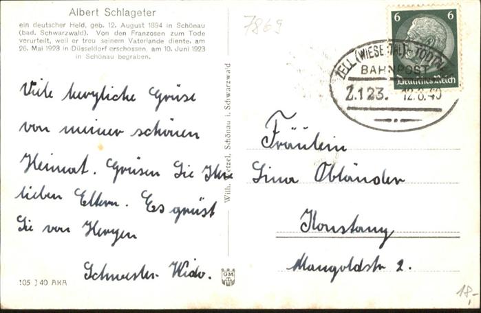 41007666 Schoenau Schwarzwald Schlageter Denkmal KatCode 11110008336079