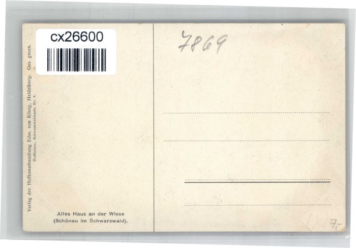 30838801 Schoenau Schwarzwald uenstler H Hofmann Altes Haus * postalisch nicht gelaufen KatCode: 11110008336079