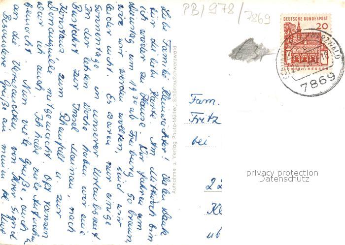 73279593 alte Postkarte Schoenau Schwarzwald postalisch gelaufen Erhaltung siehe scans [NatalD47] KatCode: 11110008336079