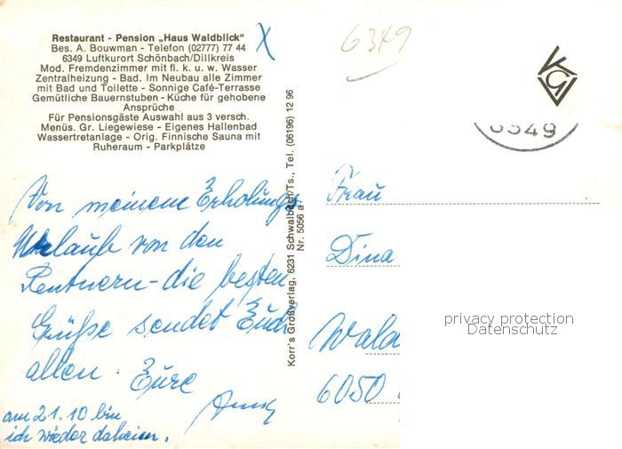 73792981 alte Postkarte Schoenbach Dillkreis Haus Waldblick m. Nebenhaus u. Schwimmbad postalisch gelaufen Erhaltung siehe scans [LiesaD40] KatCode: 11110006532012
