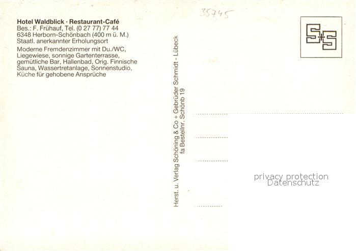 73651616 Schoenbach Dillkreis Hotel Waldblick Restaurant Cafe Hallenbad postalisch nicht gelaufen Erhaltung siehe scans [FriedD77] KatCode: 11110006532012