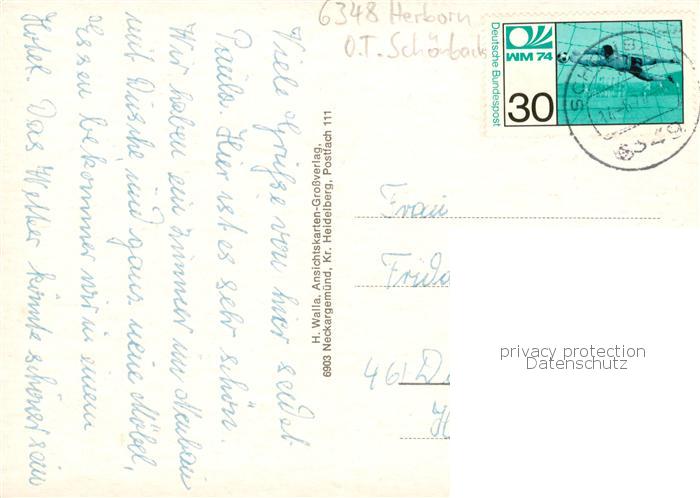 73860766 alte Postkarte Schoenbach Dillkreis Partie an der Kirche Panorama Schwimmbad postalisch gelaufen Erhaltung siehe scans [FriedD77] KatCode: 11110006532012
