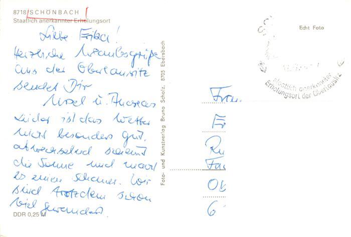 73876519 alte Postkarte Schoenbach Ebelsbach Franken Ortsansicht postalisch gelaufen Erhaltung siehe scans [FriedD77] KatCode: 11110009674129