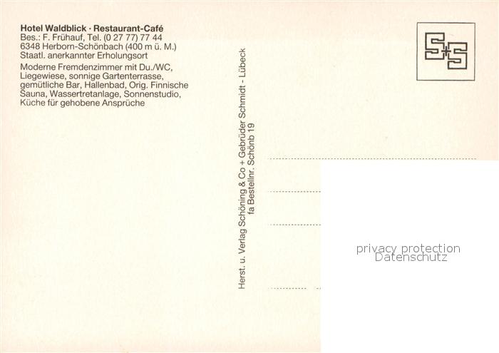 73646011 Schoenbach Hassfurt Hotel Waldblick Restaurant Cafe Hallenbad Terrasse postalisch nicht gelaufen Erhaltung siehe scans [FriedD77] KatCode: 11110009674129