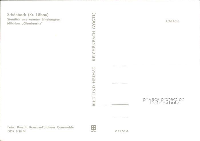 71989667 Schoenbach Sachsen Milchbar Oberlausitz postalisch nicht gelaufen Erhaltung siehe scans KatCode: 11110014286400