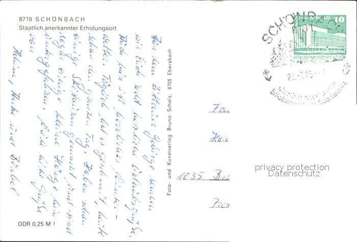 72315535 alte Postkarte Schoenbach Sachsen Ortspartie postalisch gelaufen Erhaltung siehe scans KatCode: 11110014286400