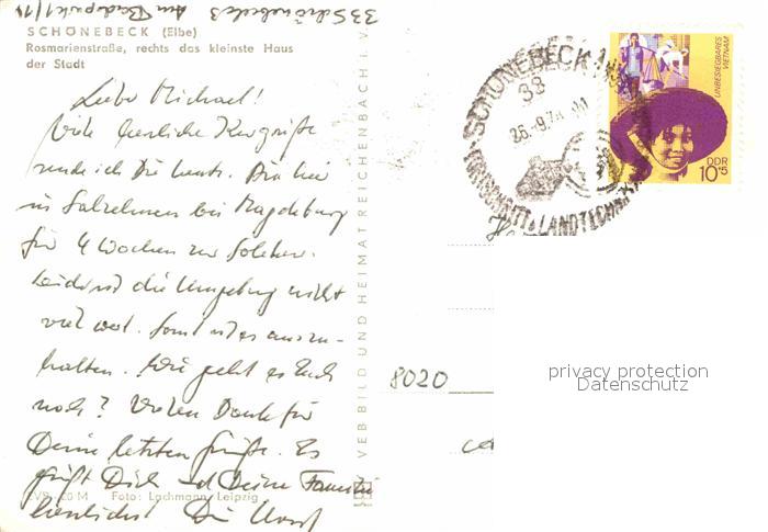 72643719 alte Postkarte Schoenbeck Mecklenburg Rosmarienstrasse postalisch gelaufen Erhaltung siehe scans [AndreD76] KatCode: 11110013055061
